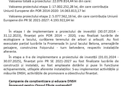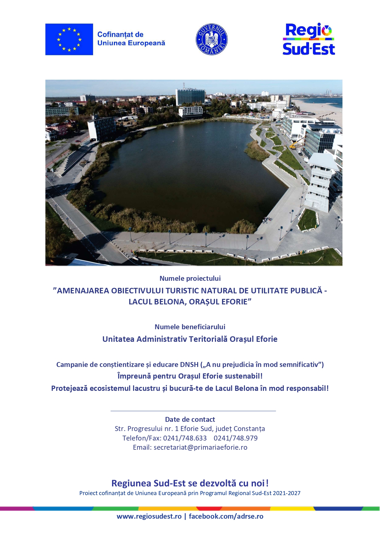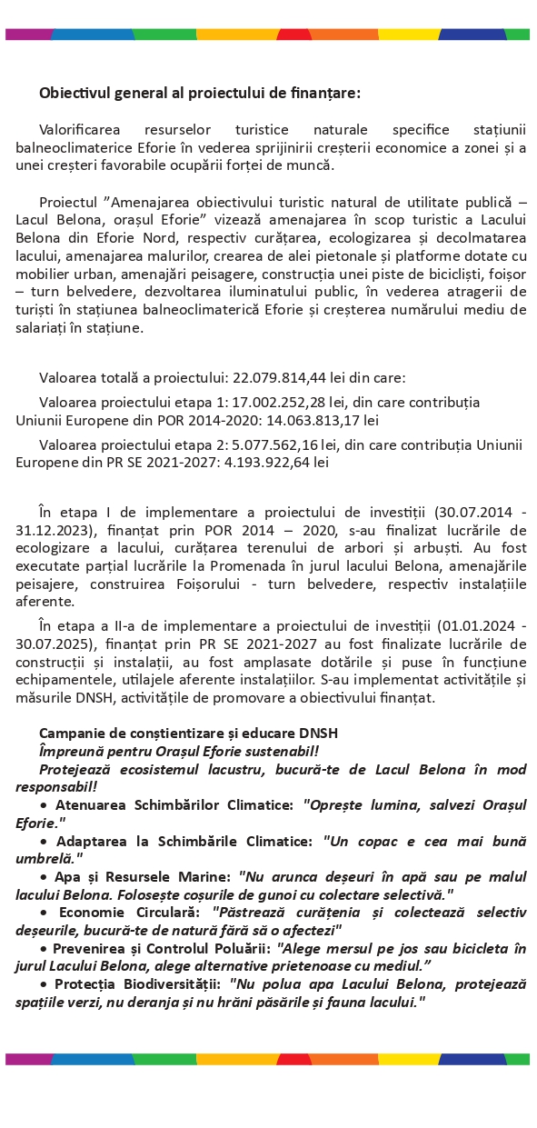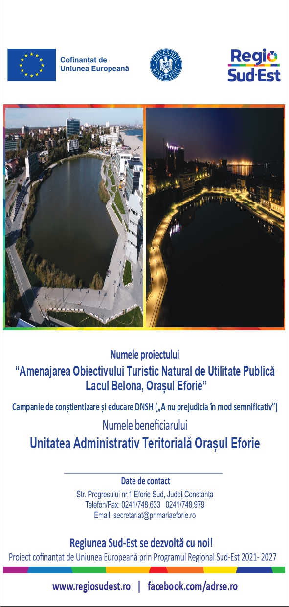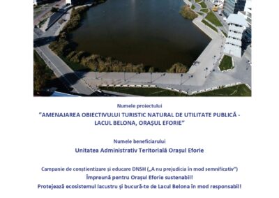 în cadrul proiectului cu titlul „Amenajarea obiectivului turistic natural de utilitate publică – Lacul Belona, Orașul Eforie”.