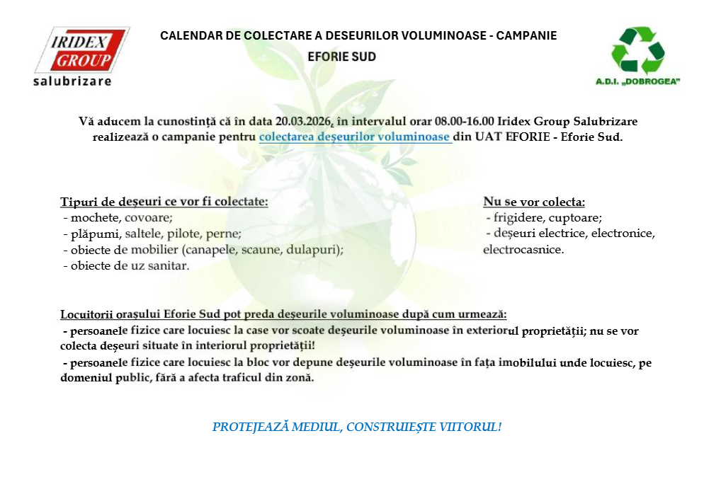 CALENDAR DE COLECTARE A DESEURILOR VOLUMINOASE EFORIE SUD