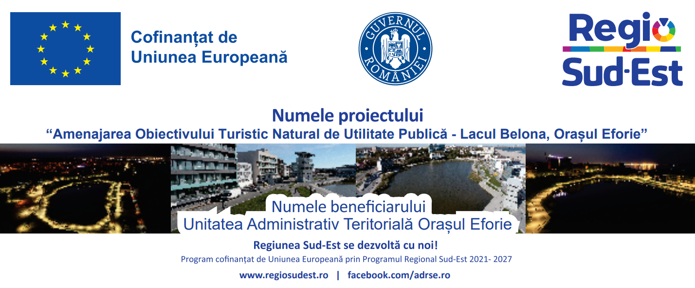 UAT Orașul Eforie, în calitate de Beneficiar, anunță finalizarea proiectului cu titlul „Amenajarea obiectivului turistic natural de utilitate publică – Lacul Belona, Orașul Eforie”.